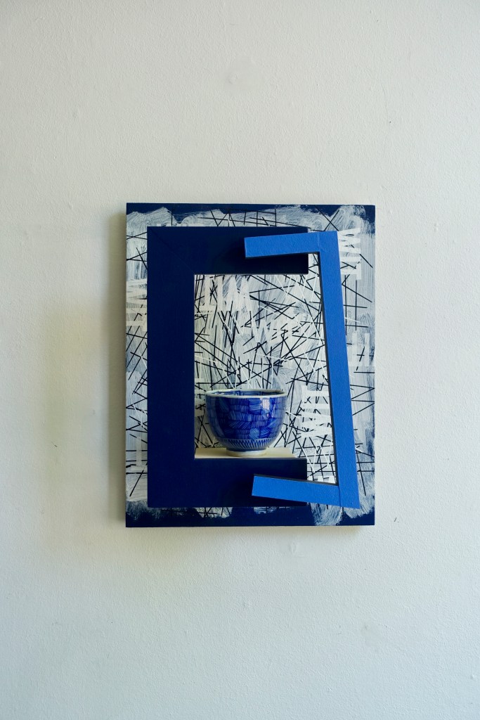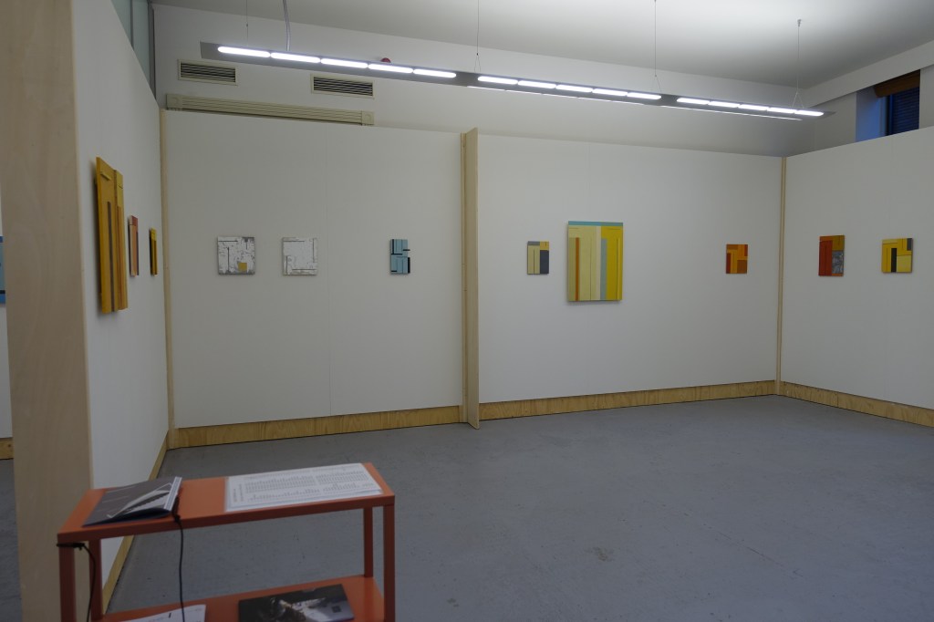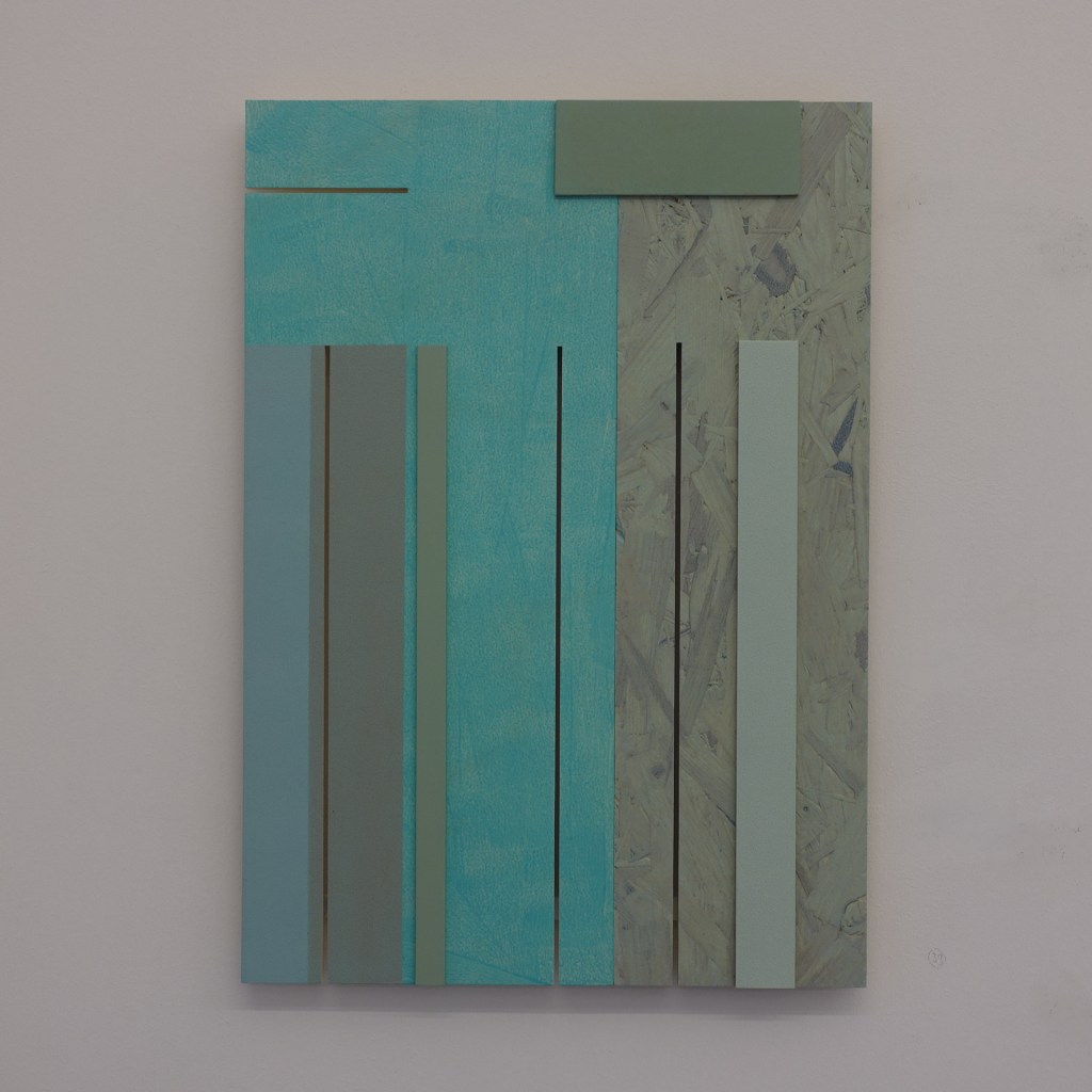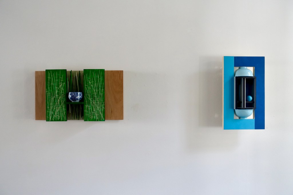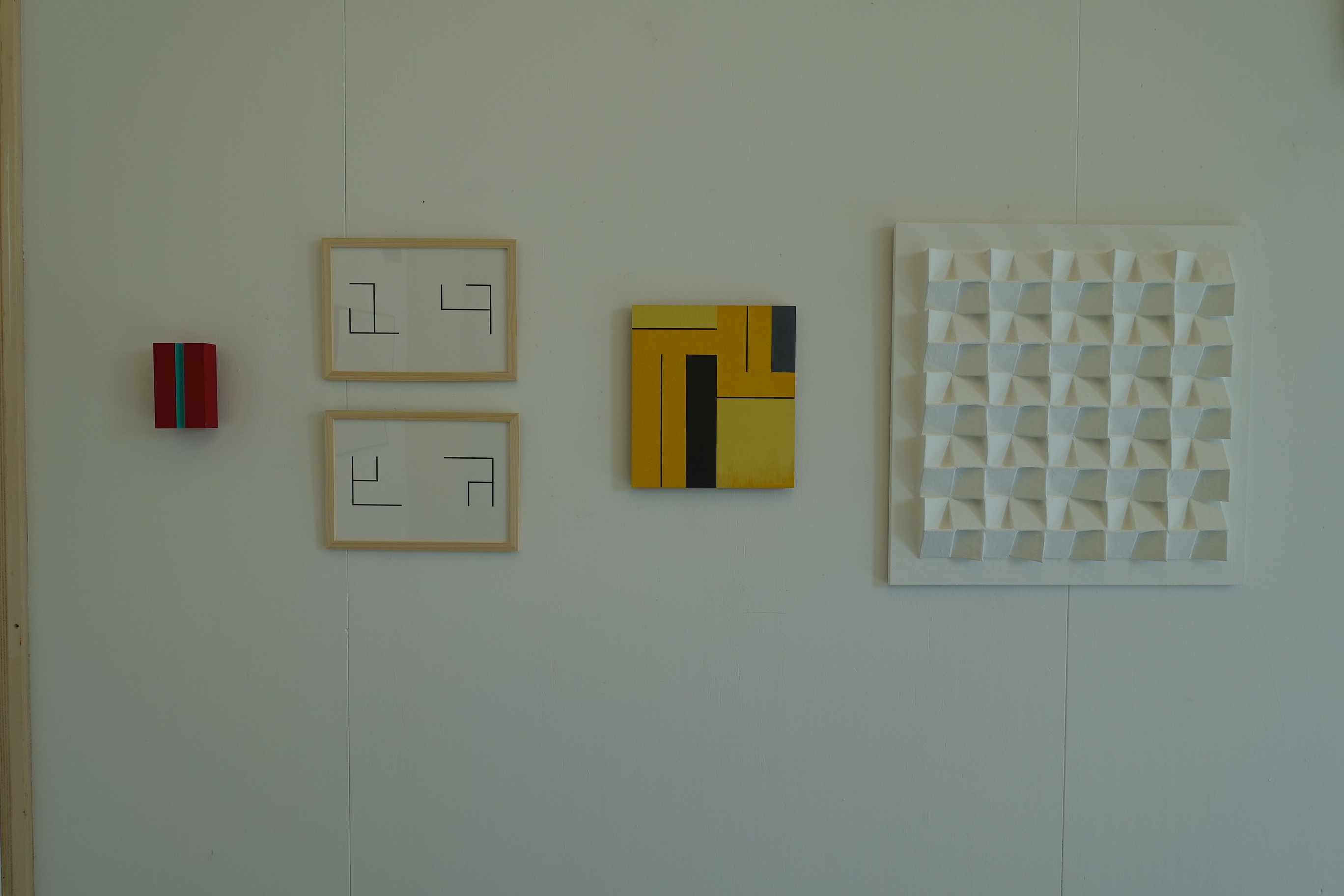 rechts: Two to turn (2019), acryl/wood, 30x27cm