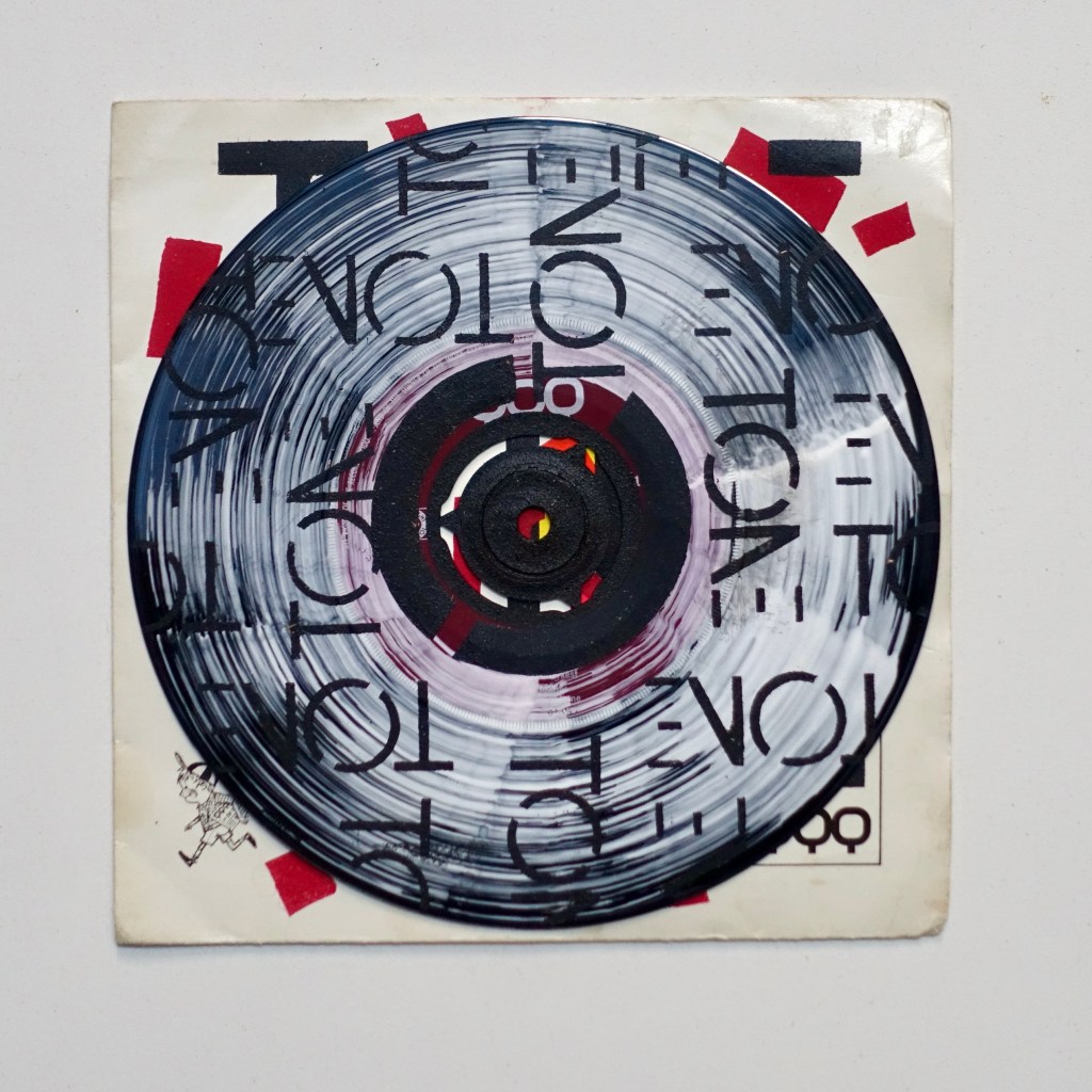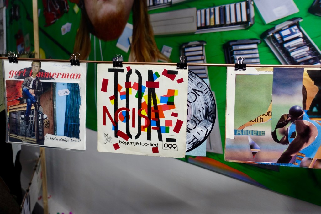 A one-off sale expo of 7-inch throwaway single sleeves collage artwork.